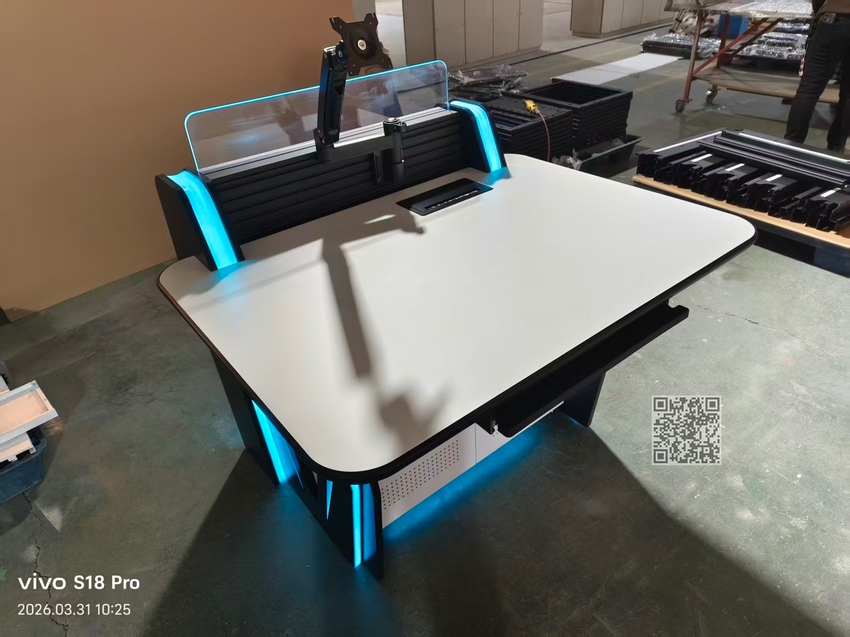 高端指挥中心、监控室或工业控制场景定制的现代化控制台